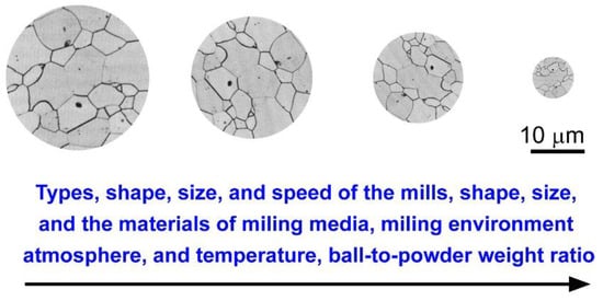 - Suryanarayana, C. Mechanical alloying and milling. Prog. Mater. Sci. 2001, 46, 1–184. [Google Scholar] [CrossRef]