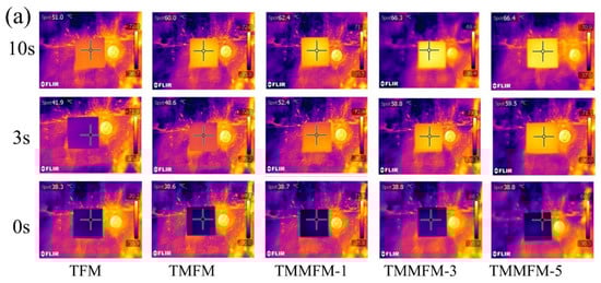 (a) Infrared thermal images of the TFM, TMFM and TMMFM. (b) Infrared thermal imaging temperature chart of TFM, TMFM and TMMFM.