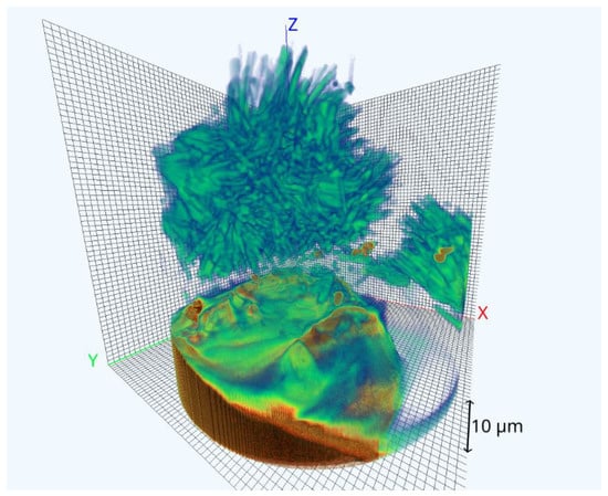 - Zschech, E.; Löffler, M.; Krüger, P.; Gluch, J.; Kutukova, K.; Zglobicki, I.; Silomon, J.; Rosenkranz, R.; Standke, Y.; Topal, E. Laboratory Computed X-ray Tomography–A Nondestructive Technique for 3D Microstructure Analysis of Materials. Pract. Metallogr. 2018, 55, 539–555. [Google Scholar] [CrossRef]