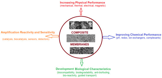 As outlined in Figure 1, the use of nanoparticles in the realization of composite membranes and the processes based on them has brought important benefits to users, such as: