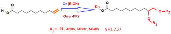 - Raku, T.; Kitagawa, M.; Shimakawa, H.; Tokiwa, Y. Enzymatic synthesis of hydrophilic undecylenic acid sugar esters and their biodegradability. Biotechnol. Lett. 2003, 25, 161–166. [Google Scholar] [CrossRef]