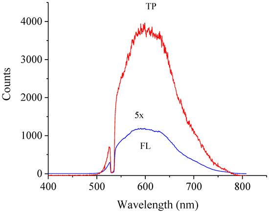 Because there is such a large difference in the intensity of fluorescence between the s-C3N4 and g-C3N4 forms of carbon nitride [8], we compared the fluorescence of these forms under pulsed laser illumination. The results of the measurements of the g-C3N4 are shown in Figure 2.