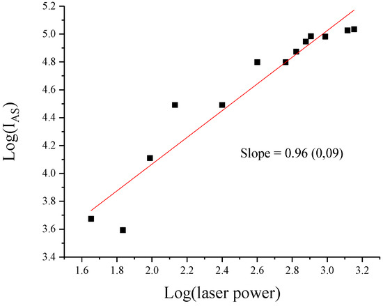 Linear log–log relationship between the anti-Stokes emission intensity and incident irradiance of the s-C3N4 nanoparticles. The number in parentheses is the standard deviation.