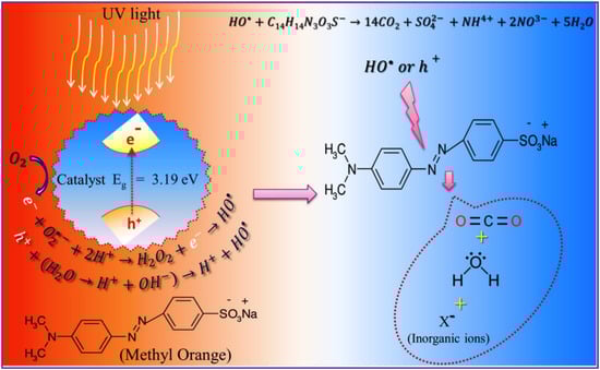- Al-Qaradawi, S.; Salman, S.R. Photocatalytic degradation of methyl orange as a model compound. J. Photochem. Photobiol. A Chem. 2002, 148, 161–168. [Google Scholar] [CrossRef]