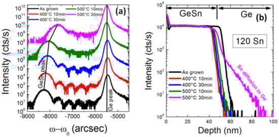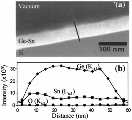 - Zhang, L.; Hong, H.; Li, C.; Chen, S.; Huang, W.; Wang, J.; Wang, H. High-Sn fraction GeSn quantum dots for Si-based light source at 1.55 μm. Appl. Phys. Express 2019, 12, 055504. [Google Scholar] [CrossRef]