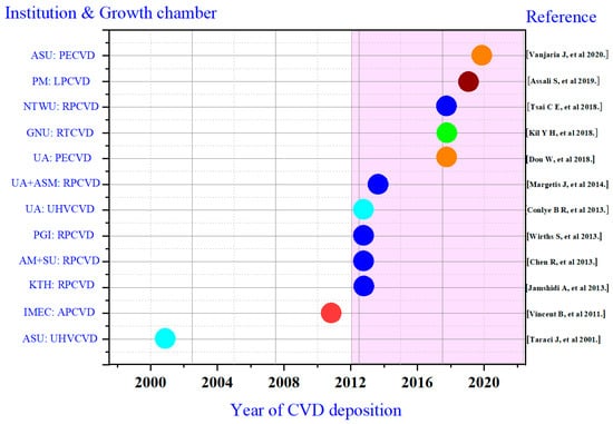 2. Research Progress for GeSn CVD Growth and Its Potential Applications