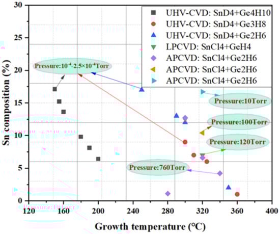 2.2. Research Progress for GeSn CVD Growth