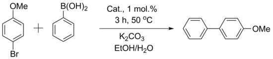 2.4. Suzuki–Miyaura Reaction with the Obtained Catalysts