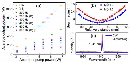 Chicago/Turabian StyleNiu, Ziqun, Tianli Feng, Tao Li, Kejian Yang, Jia Zhao, Guiqiu Li, Dechun Li, Shengzhi Zhao, Wenchao Qiao, Hongwei Chu, and et al. 2021. "Layered Metallic Vanadium Disulfide for Doubly Q-Switched Tm:YAP Laser with EOM: Experimental and Theoretical Investigations" Nanomaterials 11, no. 10: 2605. https://doi.org/10.3390/nano11102605