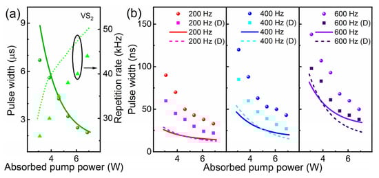 - Li, L.; Pang, L.; Zhao, Q.; Wang, Y.; Liu, W. VS2 as saturable absorber for Q-switched pulse generation. Nanophotonics 2020, 9, 2569–2576. [Google Scholar] [CrossRef]