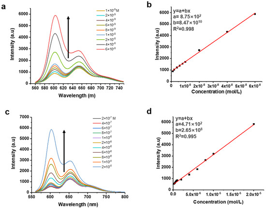 (a) Alternations of the PL spectral of C-dots (10 μg/mL) in presence of pyridine solutions of different concentrations. (b) Calibration curve showing the linear relationship between the PL intensities of C-dots at 606 nm and the concentrations of pyridine. (c) Alternations of the PL spectral of C-dots (10 μg/mL) in presence of lysine solutions of different concentrations. (d) Calibration curve showing the linear relationship between the PL intensities of C-dots at 606 nm and the concentrations of lysine.