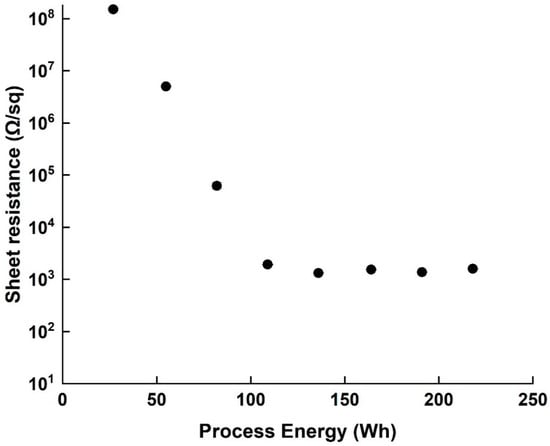 Sheet resistance values of PET film coated with dispersion after different process energy points (27–218 Wh).