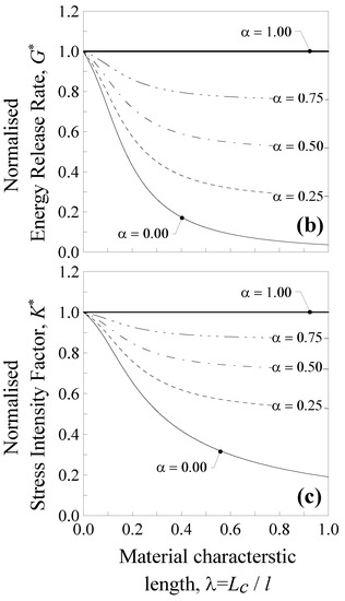 The above energy release rate of Equation (26) is then normalised with respect to the classical local solution, , so that: