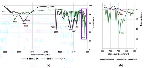 2.2. ATR-FTIR, NMR, and Elemental Analysis of G4OH, G4BK, G4K, and BBB4