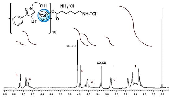 - Alfei, S.; Castellaro, S.; Taptue, G.B. Synthesis and NMR characterization of dendrimers based on 2, 2-bis-(hydroxymethyl)-propanoic acid (bis-HMPA) containing peripheral amino acid residues for gene transfection. Org. Commun. 2017, 10, 144–177. [Google Scholar] [CrossRef]
