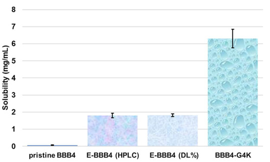 3.8. Water Solubility of BBB4-G4K and of Nanotechnologically Manipulated BBB4 Solubilized in Water