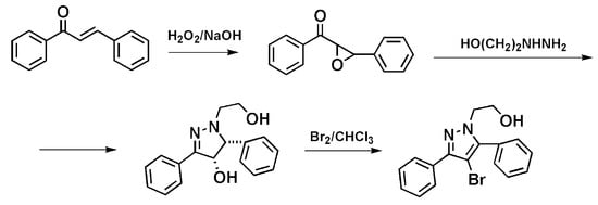 - Bondavalli, F.; Bruno, O.; Ranise, A.; Schenone, P.; Russo, S.; Loffreda, A.; De Novellis, V.; Sasso, C.L.; Marmo, E. 3,5-Diphenyl-1H-pyrazole derivatives. II—N-substituted 1-(2-aminoethyl)-3,5-diphenyl-1H-pyrazoles and their 4-bromo derivatives with analgesic and other activities. Il Farm. Ed. Sci. 1988, 43, 725–743. [Google Scholar]