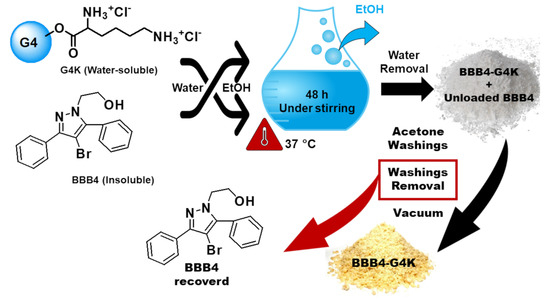 2.4. Experimental Procedure to Prepare BBB4-Loaded Dendrimer NPs (BBB4-G4K)
