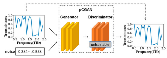 As shown in Figure 3, the generator could output structural parameters that could achieve the required functions by inputting a set of random noise and the required frequency-transmittance curve. The well-trained generator could reversely design different structural parameters that could reach the target curve according to the required frequency-transmittance curve and different random noises. Similarly, the time efficiency of using a trained generator for backward prediction was extremely high.