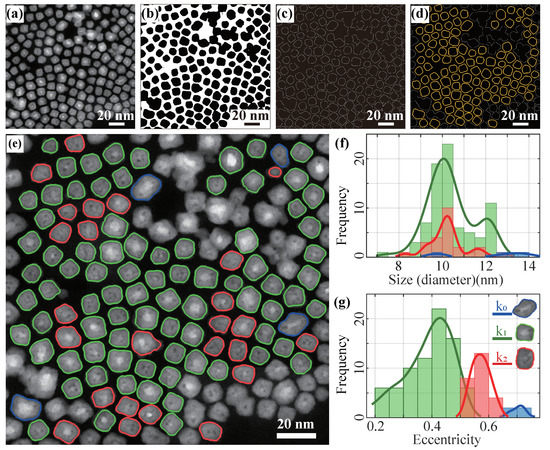 - Wang, X.; Li, J.; Ha, H.D.; Dahl, J.C.; Ondry, J.C.; Moreno-Hernandez, I.; Head-Gordon, T.; Alivisatos, A.P. AutoDetect-mNP: An unsupervised machine learning algorithm for automated analysis of transmission electron microscope images of metal nanoparticles. JACS AU 2021, 1, 316–327. [Google Scholar] [CrossRef]