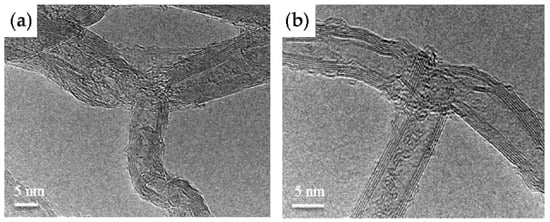 High-resolution transmission electron microscopy (HR-TEM) micrographs of (a) Y-junction MWCNTs; (b) T-junction MWCNTs. Reproduced from [16].
