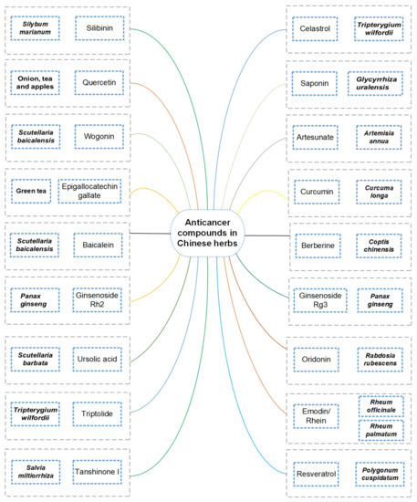 - Luo, H.; Vong, C.T.; Chen, H.; Gao, Y.; Lyu, P.; Qiu, L.; Zhao, M.; Liu, Q.; Cheng, Z.; Zou, J.; et al. Naturally occurring anti-cancer compounds: Shining from Chinese herbal medicine. Chin. Med. 2019, 14, 1–58. [Google Scholar] [CrossRef] [Green Version]