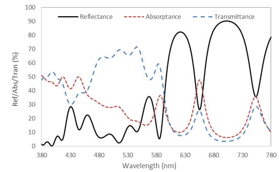The color filter, which is commonly utilized as a wave band-selective filter in the visible region, can be traditionally divided into pigment color filters and structural color filters [5,6,7]. The pigment color filter realizes wave band selection by absorbing light with a specific wavelength, while the structural color filter does so through the interference principle of specific geometric structures, such as multilayer film or photonic crystal. Lots of structural color filter based on Fabry–Perot (F–P) cavity [8,9] and guided mode resonant grating filters [10,11] have also been studies. No matter the type of conventional color filters, the basic principle of absorbing undesired wavelength light results in the low effective utilization of the source energy.