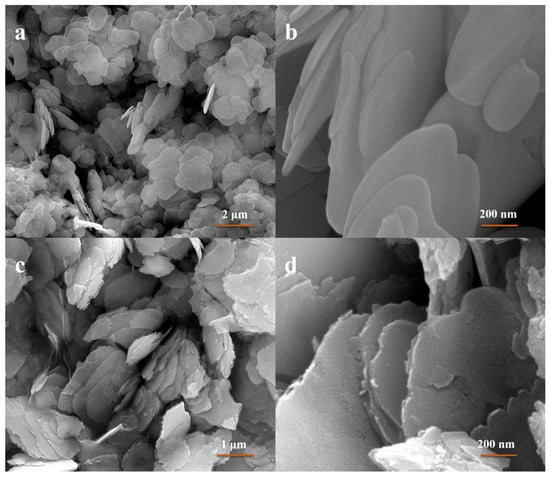 FE-SEM images of pure BiOCl nanoplates (a,b) and BC-3 nanocomposite(c,d).