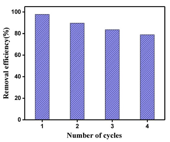 The recycling test of the prepared nanocomposite. Reaction condition: initial BPA concentration of 10 mg/L, PMS dosage of 1 mmol/L, catalyst addition of 1 g/L.