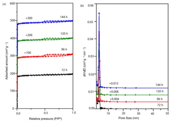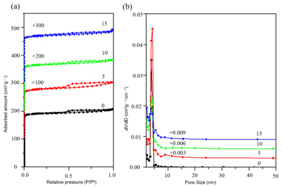 Figure 10. (a) N2 adsorption isotherm and (b) pore size distribution of sample S-11, S-12, S-13 and S-14.