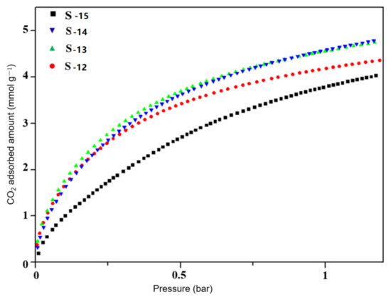Figure 12. CO2 adsorption isotherm of samples S-12, S-13, S-14 and S-15.