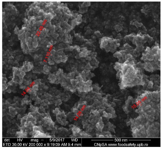 Morphology of the magnetic nanoparticles was investigated using a QUANTA INSPECT F scanning microscope (SEM) ( Thermo Fisher—formerly FEI, Eindhoven, The Netherlands) equipped with EDX solid angle 0.13 (srad) at 1.2 nm resolution and Tecnai G2 F30 S-TWIN high-resolution transmission electron microscope (HR-TEM) equipped with energy dispersive spectroscopy (EDS) as well as a selected area electron diffraction detector (SAED) operated in transmission mode at 300 kV, with TEM point resolution 2 Å and 1 Å line resolution. For elemental analysis, X-ray dispersion energy at MnKα, 133 eV resolution was involved.