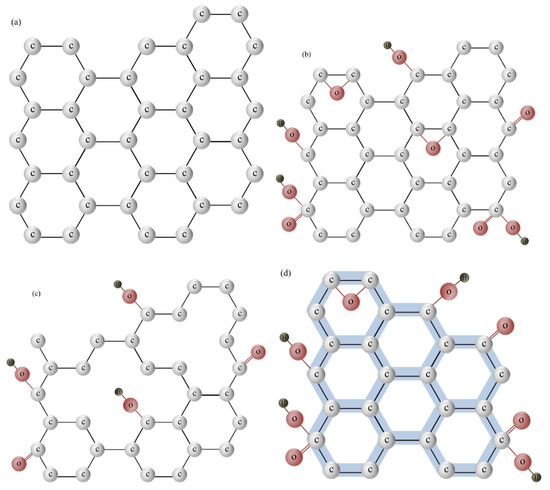 Chemical structures of (a) graphene; (b) graphene oxide (GO); (c) reduced GO (rGO); and (d) graphene quantum dots (GQDs).