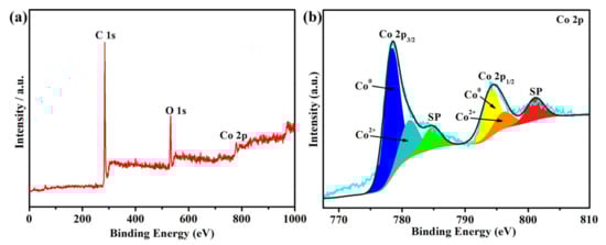 XPS spectra of Co@150PC: (a) survey spectrum, (b) Co 2p spectrum.