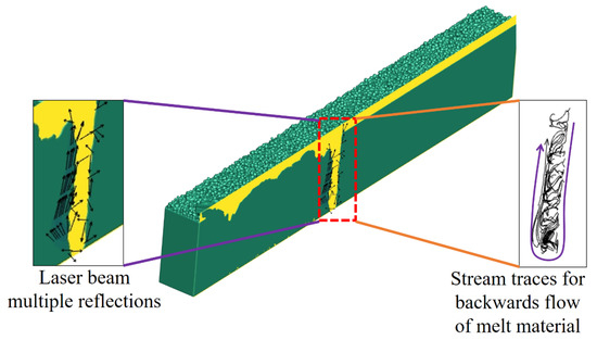 - The deep keyhole usually generates numerous laser beam reflections and stream traces. A deep keyhole experiences a larger energy density compared with a shallow keyhole, pushing the material towards vaporization. The porosity usually occurs if the solid front hits quickly before they escape from the melt pool. Due to an elevated temperature distribution in the deep keyhole, the probability of pores forming is much higher than in a shallow keyhole, as the liquid material is close to the vaporization zone. However, both shallow and deep keyholes exhibited a clockwise direction.