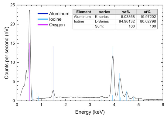 EDX elementary analysis of LiAl(IO3)4. No traces of impurities were found in our sample.