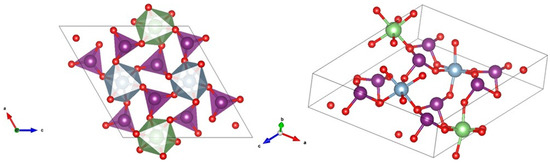 The atomic positions obtained from DFT were assumed for the Rietveld refinement. They were fixed during the refinement; only the unit-cell parameters, background, and peak-shape parameters were used as fitting parameters. We obtained Å, Å, Å, and The goodness of the fit refinement parameters were , and . As illustrated in Figure 4, the Li1+ and Al3+ cations are coordinated to six O atoms and form slightly distorted octahedral units, which are connected by IO3 triangular pyramids. This coordination for I5+ ions is typical of metal iodates, being related to the existence of a lone pair of electrons of the I atom in the IO3 molecule. In the proposed crystal structure, each octahedral unit is surrounded by six IO3 groups. Regarding the nanoparticle size leading to the XRD peak-broadening, the Le Bail global fitting procedure was implemented by assuming a spherical morphology and the absence of any strain, and by considering the Lorentzian and Gaussian parts of the peak shape. The nanocrystal size thus derived at 22.7 nm is in good agreement with the value at ≈22.9 nm obtained by the Williamson-Hall method [44,45,46].