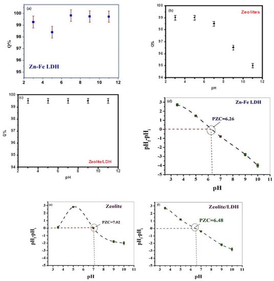 - Mahmoud, R.K.; Taha, M.; Zaher, A.; Amin, R.M. Understanding the physicochemical properties of Zn–Fe LDH nanostructure as sorbent material for removing of anionic and cationic dyes mixture. Sci. Rep. 2021, 11, 21365. [Google Scholar] [CrossRef]