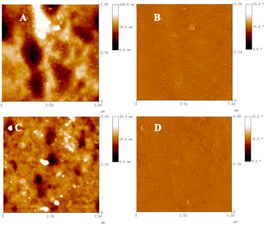 The AZO-LC-PMP-Z 6% samples were morphologically characterized by atomic force microscopy. Analysis was carried out using the Veeco Dimension Digital Instruments Nanoscope IV (Plainview, NY 11803, USA) apparatus in the tapping mode configuration.