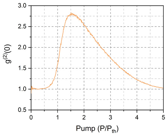 Second-order autocurrelation function () of laser emission with pump.