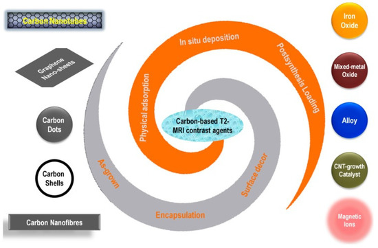 - Gao, Y. Carbon Nano-Allotrope/Magnetic Nanoparticle Hybrid Nanomaterials as T2 Contrast Agents for Magnetic Resonance Imaging Applications. J. Funct. Biomater. 2018, 9, 16. [Google Scholar] [CrossRef] [PubMed]