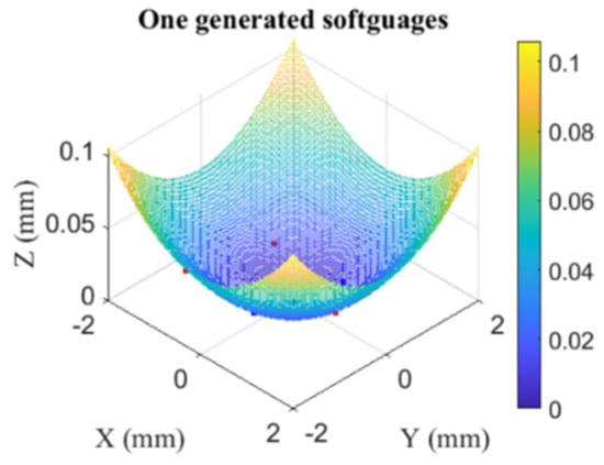 Nine reference aspherical softgauges were generated and Figure 11 and Figure 12 illustrate only one generated softgauges with five contacting points. Each generated softgauge was submitted to both HTR and EPF fitting algorithms, and Table 2, Table 3 and Table 4 summarize the returned results of MZ-MZref and the execution time for configurations I, II and III.