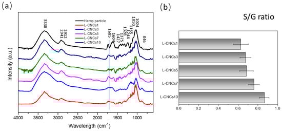 3.3.1. FTIR Analysis of the L-CNCs Particles