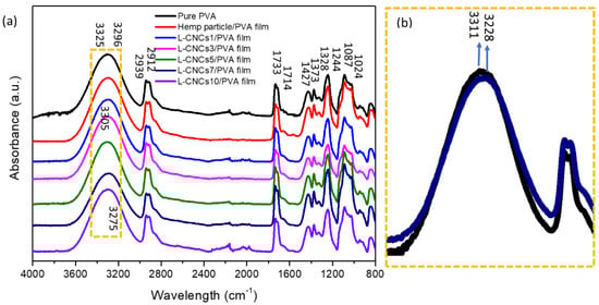 3.3.2. FTIR Analysis of the L-CNCs/PVA Films
