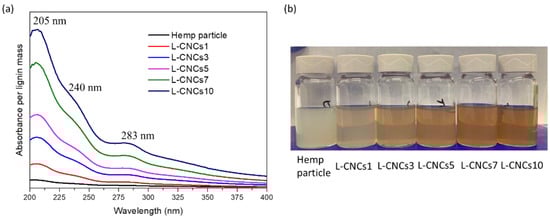 3.4.1. UV-Shielding Performance of Hemp Particle and L-CNCs