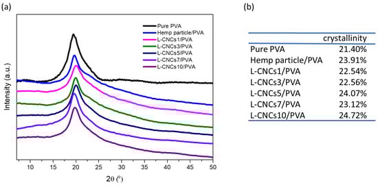 3.5. Crystallinity Analysis of the L-CNCs/PVA Films