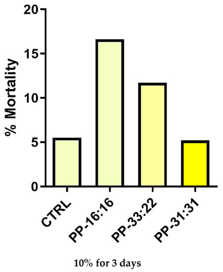 The pH values are reported in Table 3. Alkaline pH values of soaking water were induced for all mineral-filled formulations. In particular, PP-33:22 and PP-31:31 revealed high pH values (over 9) during the first 24 h. After three days, the pH values drop to approximately 8.5, and slight alkaline values (over 8) were maintained for all the tested endpoints.