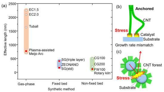 - Kim, D.Y.; Sugime, H.; Hasegawa, K.; Osawa, T.; Noda, S. Fluidized-bed synthesis of sub-millimeter-long single walled carbon nanotube arrays. Carbon 2012, 50, 1538–1545. [Google Scholar] [CrossRef]
