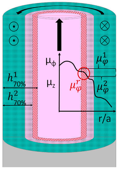 Varying the frequency, the changes in 70% and corresponding can be obtained. As measured is an average value of permeability over the layer with thickness 70%, knowing the array of corresponding to different 70%, one can reconstruct the radial dependence of permeability , as depicted in Figure 3.