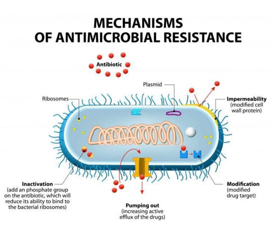 Mechanisms of bacterial resistance to antibiotics (from Designua/Shutterstock.com).